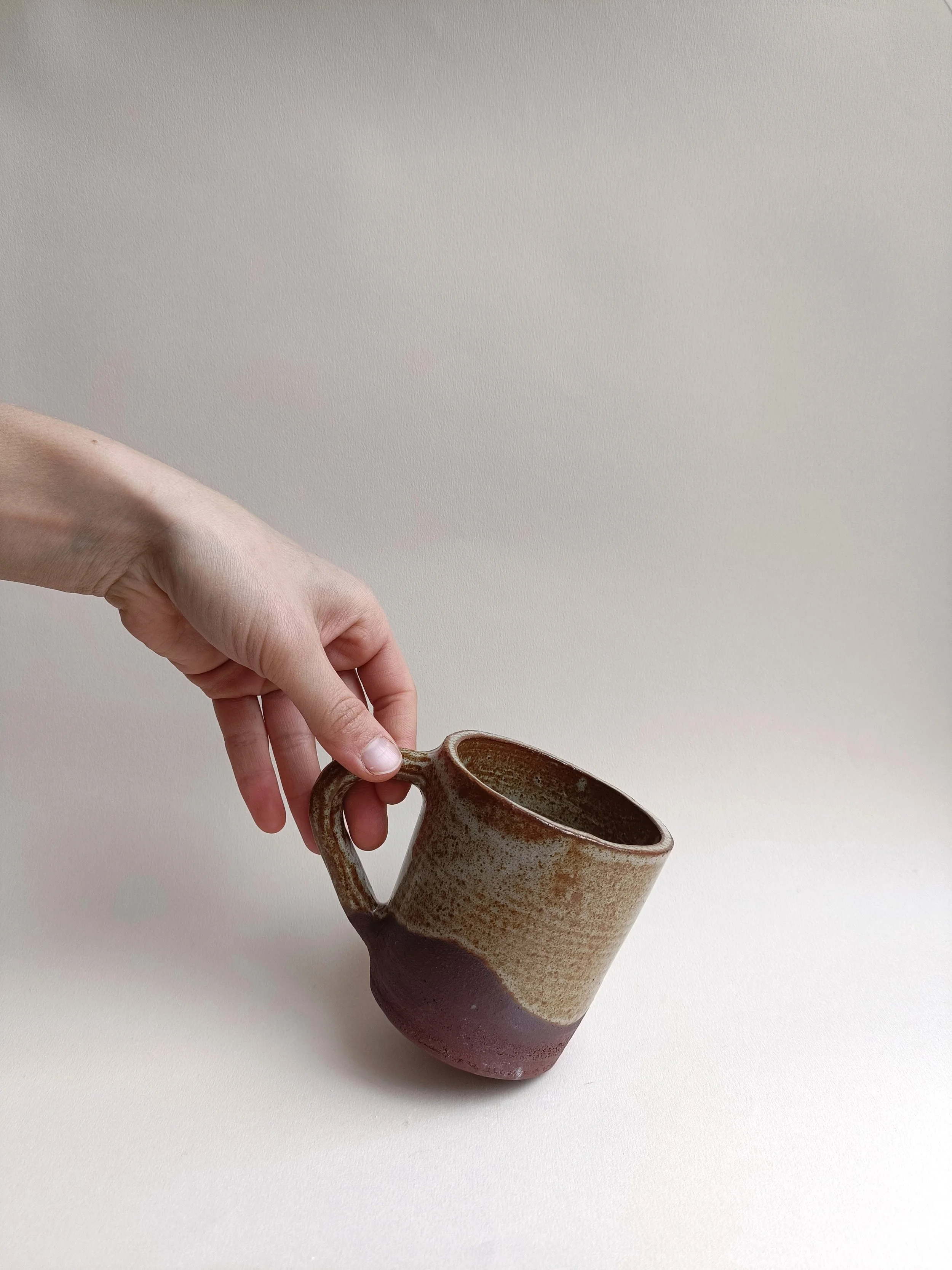 Mug en grès rouge, émail blanc gris